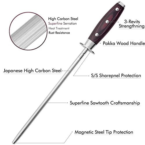 - Steel patch protection device between the handle and the rod. it will protect your hand and finger when you are sharpening your knife.