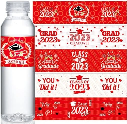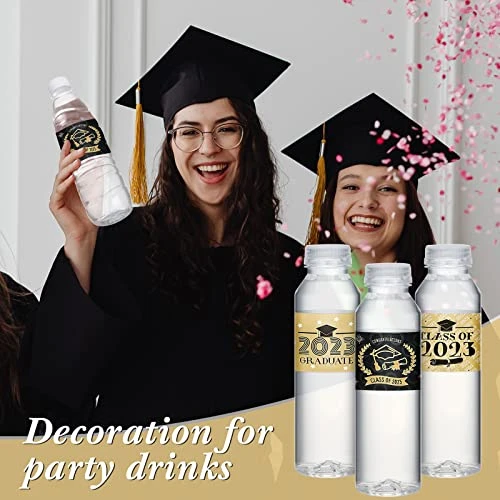 - Graduation Theme Appearance: these water bottle labels feature graduation season themed elements such as the texts [class of 2023], [grad 2023], graduation hat and other more; Using these labels to decorate the party water bottles, to make water bottles become more festive and be more in line with the themed party atmosphere