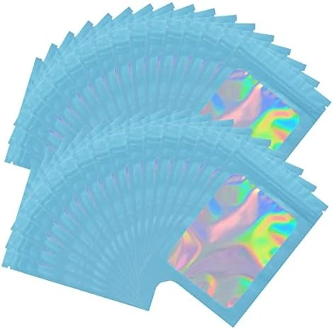 100 Pieces Resealable Smell Proof Bags Foil Pouch Bag Flat Ziplock Bag For Party Favor Food Storage (Holographic Color, 8 X 10 Inch)