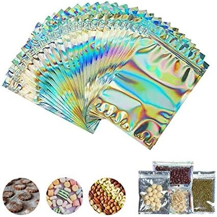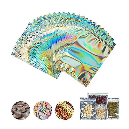 - ✅ 【Material】: These resealable smell-proof bags are made of plastic film, a durable and long-lasting material that will not tear easily. Back is holographic rainbow color aluminum mylar foil,made of quality metalized film, durable and shining,it’s very beautiful color – especially for party favor candy food storage.