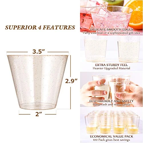 - 🍹Convenient Lifestyle – The one-off design of these 9 Ounces Gold Glitter Cups makes it easy to clean up after a busy dinner service. It is the perfect solution for elegance and convenient dining in any venue! Cut down on cleaning and dishwashing time make life more comfortable.