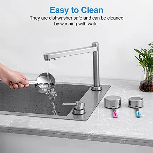 - Easy to clean: You can put the high-quality measuring spoon in the dishwasher and wash it together. The size is etched on silver, so it will not be washed off after washing, and the text is easy to read. You can easily put them in a drawer or cabinet.