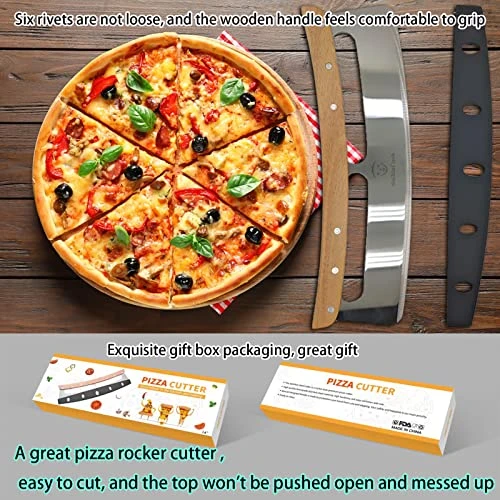- Comfortable handle, not easy to slide: our pizza cutter handle is made of high quality oak, ergonomically designed, as a whole with all- wooden handle, handle comfortable grip, not easy to slide. When cutting can reduce hand fatigue, let you more easily finish pizza division. In addition, the “scraper is also equipped with comfortable handle, convenient you use.