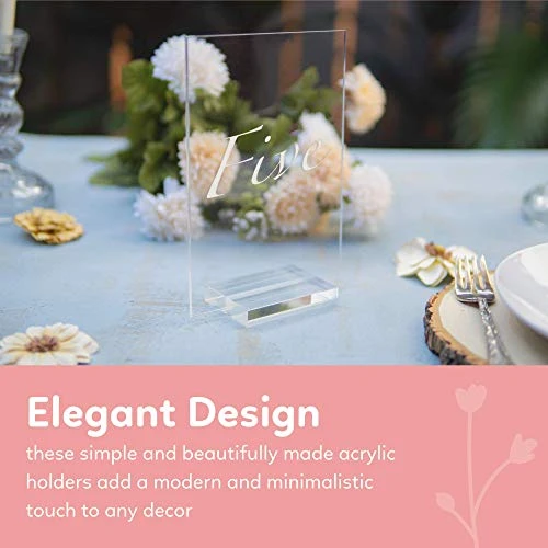 - ✨ A TOUCH OF ELEGANCE. These acrylic table number holders are the perfect tabletop centerpieces for your acrylic sheets or cards. They have a clean decorative look that will be sure to impress your dinner guests!
