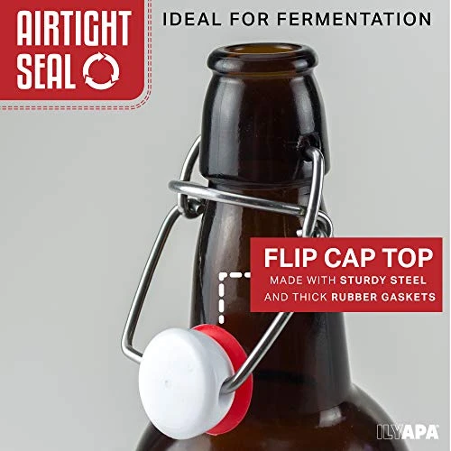 - EXTRA-STRONG SEAL – The Flip Cap tops are made with sturdy steel and thick rubber gaskets to provide a super strong, leak proof seal, which helps preserve your homemade beverages, carbonation, or fermentation. 16 oz bottles. Case of 12. Amber Color.
