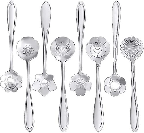 - What you receive: the package includes 16 pieces stainless steel spoons, 8 patterns, each pattern has 2 pieces, enough quantity for you to choose