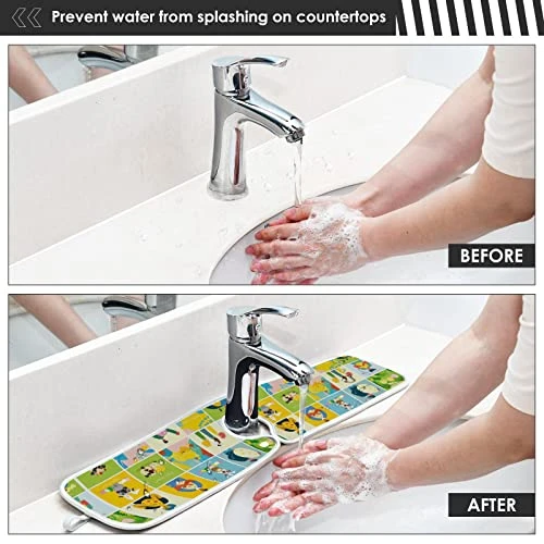 - OCCASION: The adaptable design of the faucet splash-proof pad is suitable for kitchen bar, sink, bathroom sink and RV faucet, etc. It absorbs water quickly, keeps it dry and tidy, and can protect the countertop. The faucet kitchen countertop mat is soft and foldable, easy to store; neatly packaged and not easy to fall off.