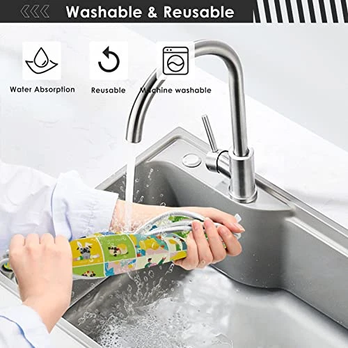 - MATERIAL: The main material of the absorbent faucet drying mat is polyester (printed surface) + composite sponge + cotton satin. Water absorption, soft, Reversible, washable and fade resistant.