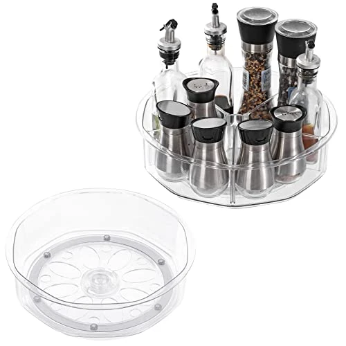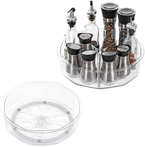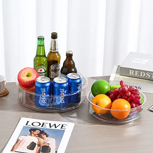 - 【High Quality Construction&Food grade Safety】This Rotating Turntable organizer bins made of durable and clear BPA-Free and Chlorine free shatter-resistant plastic which bins for organization can Be reused over a long period of time.They are food grade safety and can be cleaned easily with mild soap and water.