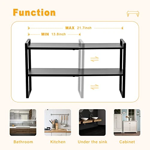 - ✅【Versatile Application】: Can be used in various places of your home including kitchen, wardrobe and bookshelf. Can also make your bathroom, office, living room or bedroom change from messy to tidy. You may use the shelf as a cabinet organizer for plates, bowls, snacks, books, magazines and whatsoever.