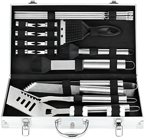 - Elevate Your Grilling to Pro-level With Ultimate BBQ Kit – The solid stainless steel construction is built to last, and each grill tool is dedicated to the cooking of delicious food. Whether you’re hosting a summer BBQ or an indoors affair, this BBQ tool set is for you.