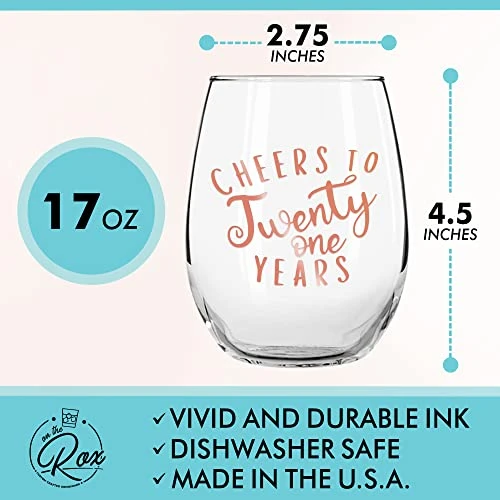 - MADE IN THE USA – Each glass is made, printed, and packaged in the USA. We fully stand behind our products with 100% satisfaction and a money-back guarantee. Click ‘Add to Cart’ now to get your cheers to 21 years birthday wine glass hassle-free.