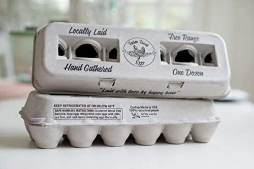 - These egg cartons are made from 100% recycled molded fiber pulp paper – Reusable and Sturdy. FDA required safe handling instructions printed on the back.
