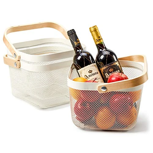 - 【 SPECIFICATIONS 】Set of 3 – Basket Dimensions: 9.4 x 9.4 x 6.3 inches (24 x 24 x 16 cm). Handle Height: 12.5cm (4.9 inch).Material: Metal + Wood.