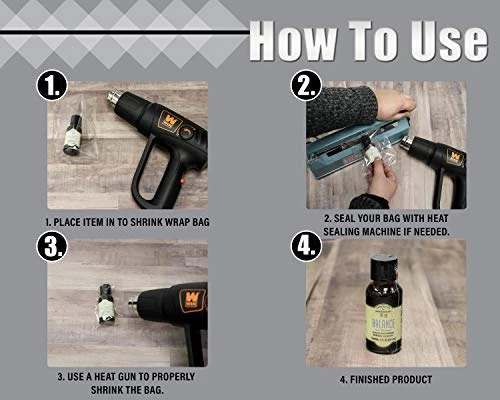 - Use a heat gun, heat tunnel or hair dryer to shrink & a sealer to seal bags.