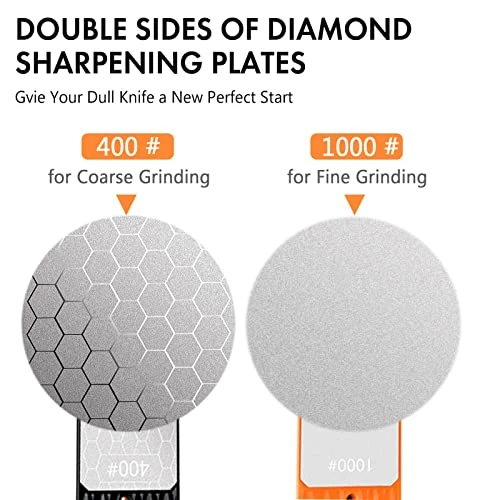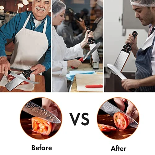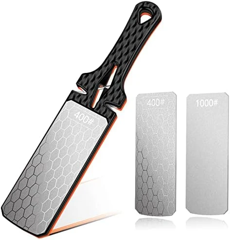 - 【CONVENIENT TO USE, NO WAITING ANY MORE】: Unlike other whetstones, our diamond sharpener stone allows you to sharpen directly. Choose one grinding side based on your knife blade, then apply an even force to sharpen your knife with the angle of 15-20 in one single direction. Few light strokes to make your knife sharper than razor.