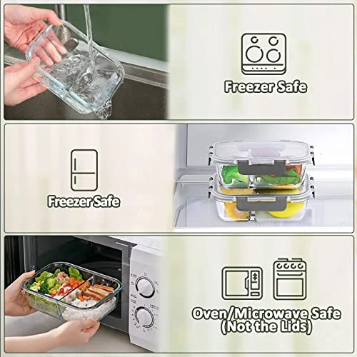 - PORTION CONTROL FEATURE:The portion control feature of the divided glass lunch containers allows you to regain control over your meals. The two compartments glass containers make it easy to organize your meals and keep your diet plan.