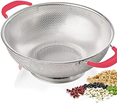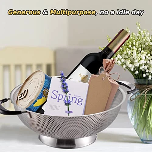 - LARGE CAPACITY – 5 Qt large capacity colander provide you a full service, it has a spacious strainer that allows you to strain pasta, orzo, vegetables and fruits for your large family at once. Our colander is what you need.