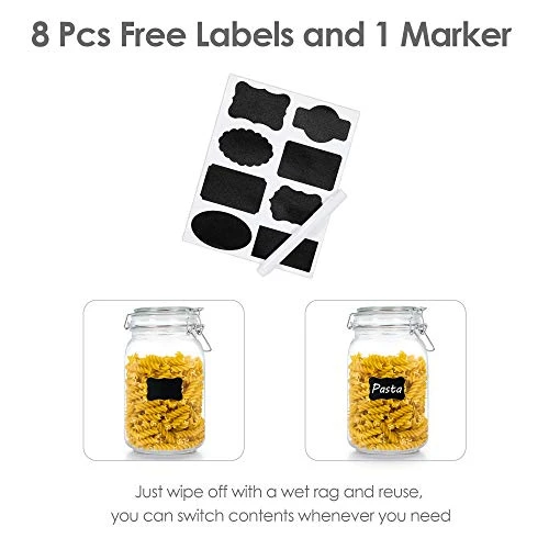 - Durable and Convenient — Crafted of food-graded glass, BPA-Free, non-toxic. They are durable enough for your daily storage use. Included extra 8 pcs reusable labels, you can switch contents whenever you need.