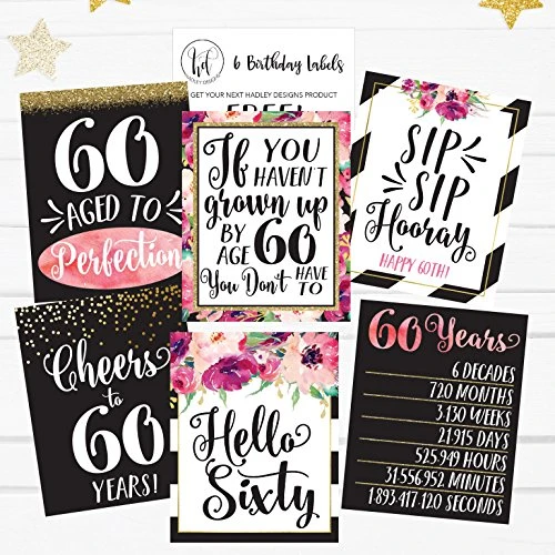 Be the first to review “6 60th Birthday Wine Bottle Labels Or Stickers Present, 1961 Bday Milestone Gifts For Her Women, Cheers To 60 Years Funny Sixty Chic Pink Black Gold Party Decoration Centerpiece Supplies For Wife, Mom” Cancel reply