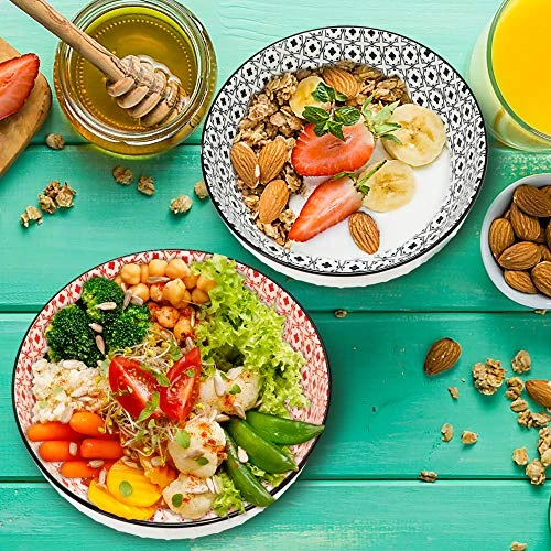 - GORGEOUS SIZE & VERSATILE – The extra large (8.3 inches wide and 68 FL oz) deep ramen soup bowls are ideal for salad, soup, side dish, ramen or pho, fruit or cereal for gathering. Also great as a buffet and BBQ staple for serving breads, crisps and tortillas, rice salads and vegetables. Perfect for everything from daily use to special occasions.