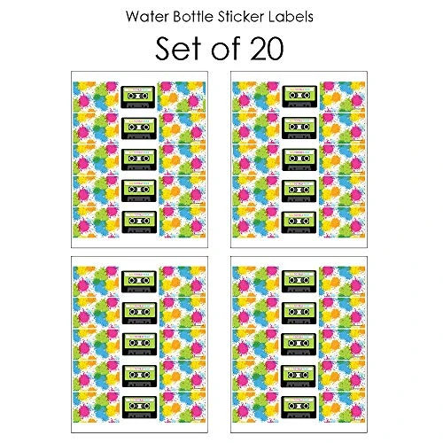 - HIGH QUALITY PARTY SUPPLIES: 80’s Retro water bottle labels are professionally printed on a sticker paper with a glossy coating. They are waterproof and can be used on beverages that will be chilled, just be sure to apply prior to chilling. Add them to a 1980s party beverage bar for an impressive, coordinated display.