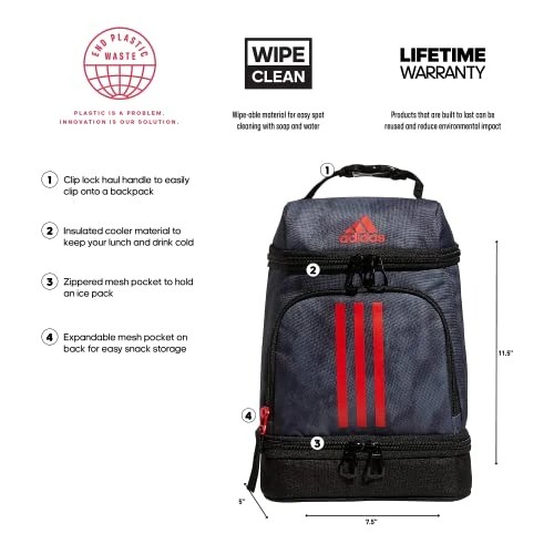 - Everything you need for a well-rounded meal is at your fingertips with the insulated adidas® Excel 2 Lunch Bag, featuring a front zip pocket with mesh divider for an ice pack!