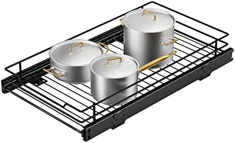 - 💒【STABILITY CONSTRUCTION】The kitchen cabinet sliding-out shelf is designed with an industrial-grade ball sliding system to ensure smooth and quiet sliding every time. The vertical guide rail can provide better load bearing. The tray is removable and washable, give you a tidy home.