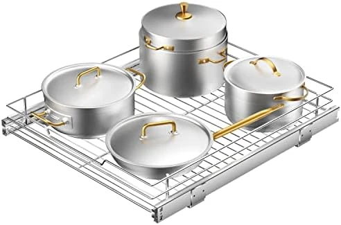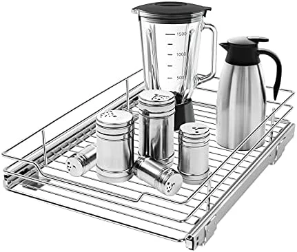 - 💒【SHELF SIZE】Measuring 12.6W x 16.5D x 13H, overall, it offers a chrome-plated to prevent scratching the surface. A sliding design allows you to easily slide it out and access what’s inside. Tidy up under the bathroom sink or corral kitchen essentials with this organizer.