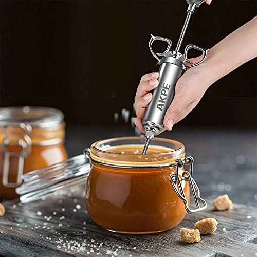 AKPE Meat Injector, Stainless Steel Marinade Injector Syringe For BBQ Grill And Turkey, 2 Ounce Syringe With 3 Needles, Easy To Use And Clean (Without Case)