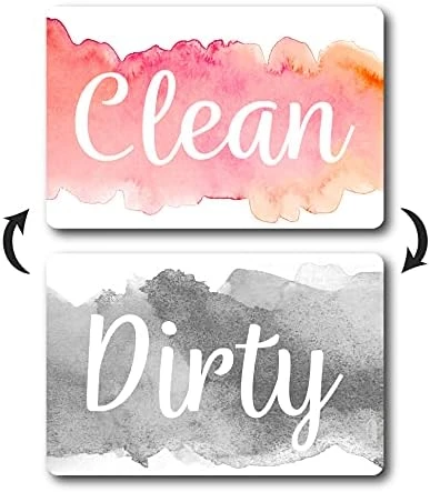 - VIBRANT WATERCOLOR DESIGN – This indicator sign features a bright aqua teal clean side and a neutral gray dirty side for easy indication if the dishes are clean or dirty.