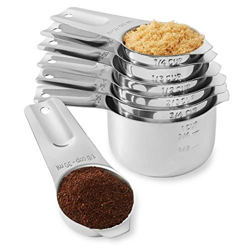 - Premium stainless steel design: Crafted of 100% professional grade 304 stainless steel with a beautiful polished finish. This premium set of 7 measuring cups provide quick and accurate measurements for both dry and liquid ingredients. Designed to last a lifetime, our measuring cup set is ideally suited for professionals and home cooks alike.