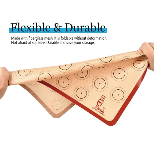 - SUPER KITCHEN Mat as a Gift:This premium macaron baking mat is durable and healthy .There are an instruction and hair elastic as a GIFT.This premium silicone macaroon mat with giftbox and hairtie is perfect to give as gift!!