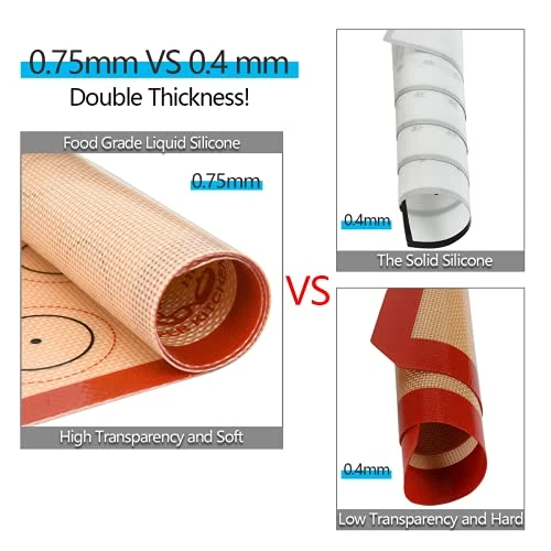 - Non Stick & Easy to Clean: These silicon mats are made from food grade liquid silicone with fiber glass, so you will enjoy the best non-stick baking mat if you buy them now. No more scrubbing! Even burnt sugar and fat falls off on its on. Just rinse the washable and reusable mat in warm soapy water to clean it and dishwasher safe.