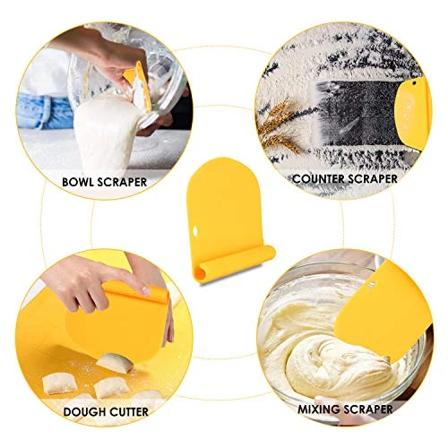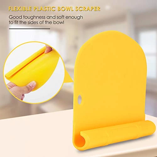 - Flexible Plastic Bowl Scraper with Handle: The wide curved edge is Flexible and Slightly Sharp, so you can easily cut dough on a silicone baking mat, or take out the last bit of dough or batter from the bowl. The Ergonomic Handle fits anyone’s hand comfortably, and it is more slip resistant than a metal handle even when wet