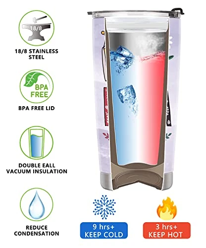 - PREMIUM MATERIAL-Made of 304 18/8 stainless steel,built to last,corrosion resistant, no dirt, easy to clean,special printing coating make comfortable touching, sweat-proof and non-condensation,100%BPA free lid is transparent,zero chemical,no-toxins with drink hole seals tightly,to spills under control,Hand wash recommended