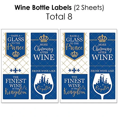 Big Dot Of Happiness Royal Prince Charming – Mini Wine Bottle Labels, Wine Bottle Labels And Water Bottle Labels – Baby Shower Or Birthday Party Decorations – Beverage Bar Kit – 34 Pieces