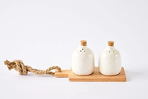 - This 5-piece set comes complete with a wooden paddle board shaped tray for shakers to rest on, finished with a jute rope loop handle.