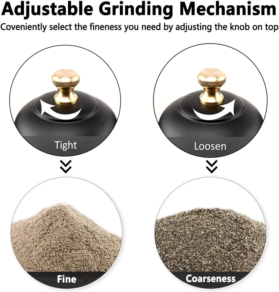 - Easy to Clean & Capacity: This salt and pepper grinder is equipped with a cleaning brush gift for easy cleaning.