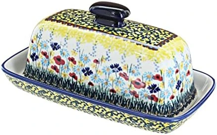 Blue Rose Polish Pottery Prairie Garden Butter Dish