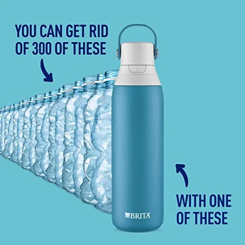 - This 20 oz Brita water bottle is made from durable, double wall insulated stainless steel to keep water cold; this sleek, leak proof design is cup holder friendly; Height 10.5 inch ; Diameter 3 inch ; Weight 1 pound