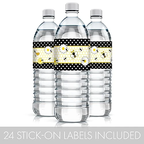 - WATER BOTTLES NOT INCLUDED. Labels fit most standard size water bottles for bumble bee baby shower or bee birthday party favors.
