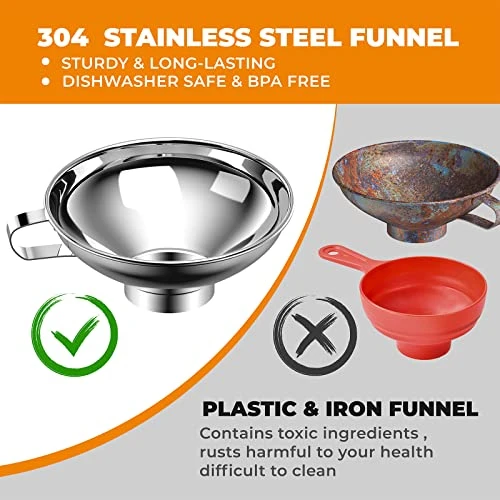 - 🥝Safe & Long-Lasting: Pisol wide mouth canning funnel for most jars is made of 304 food grade stainless steel, which resists corrosion, no rusting, no bending, no scratching and no leaking, BPA free, Cold & Heat resistant. With its Durable, long lasting, hard to break materials, you might rest assured the quality of our funnel.