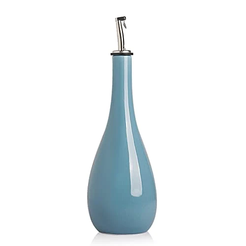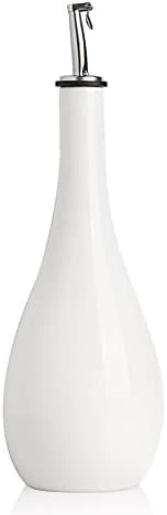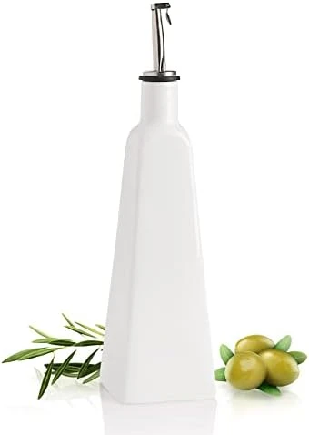 - Leak Proof & Keep Liquid Fresh – The bottle is made of durable ceramic that creates a smooth glaze. Designed with a spout makes it easy to open and close the vinegar bottle for extended shelf life of liquid. And the opaque porcelain bottle protects the oil from light and makes it last longer.