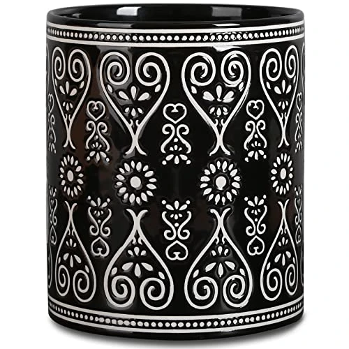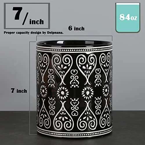 - ใPRACTICAL COUNTER DECORATIVEใ๐ฉ๐ปโ๐ณ The utensil holder is made of ceramic, with the dark black background and white patterns. The smooth enamel exudes a stylish and beautiful temperament. The ceramic canisters are the perfect decoration for kitchen countertops, stovetops, dining tables, coffee bars, and farmhouses.