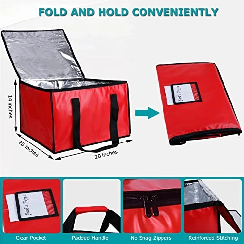- Easy Storage – This pizza delivery bag is collapsible, down to a compact size for easy storage with reinforced bottom for extra durability. They sit flat when loaded so your groceries wont roll around in your car or trunk.