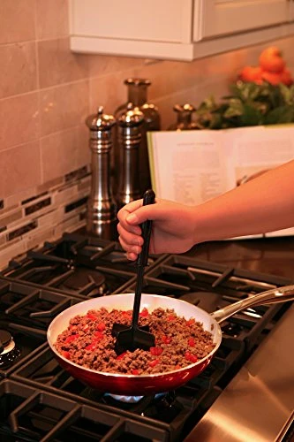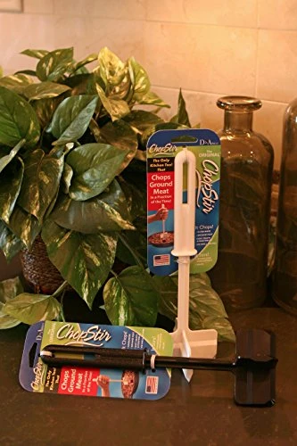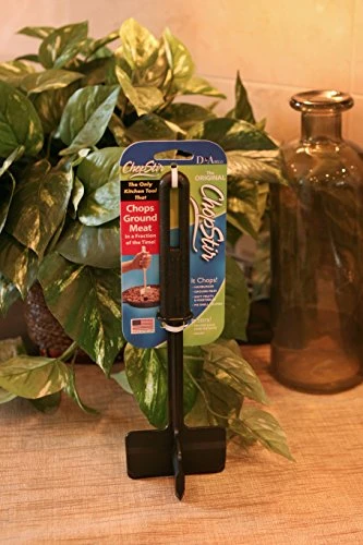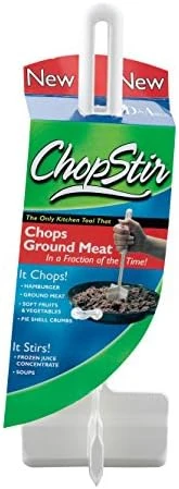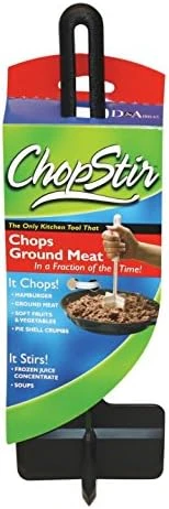 The Chopstir is designed with a patented blade that easily chops meat into evenly sized pieces – that cook faster and more uniformly. Frozen concentrates are transformed into juice in just seconds. It chops and stirs, and will not damage non-stick cookware. Easy to clean and it will not stain. Dishwasher safe. Made of Nylon. Overall, Chopstir measures 3-1/2 by 10-3/4-inch. Made in the USA.