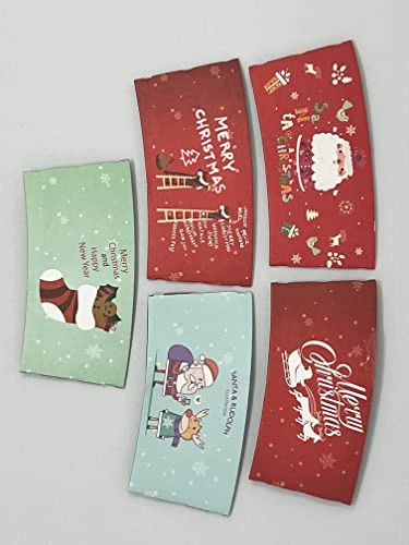 - Christmas-Themed Sleeves – You’ll also receive insulated cup sleeves in red, blue, and traditional holiday colors featuring Santa, reindeer, stocking, and more cheer! Each 50 pack box will have a mix of the six different sleeve designs.