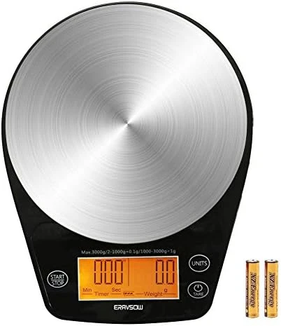 - ☕ 0 PURCHASE RISK GUARANTEE-ERAVSOW is committed to creating quality kitchen products to optimize your leisure life. ERAVSOW COFFEE SCALE WITH TIMER comes with one-year warranty, if you think it doesn’t work well for you,you can contact us to get refund or replacement.