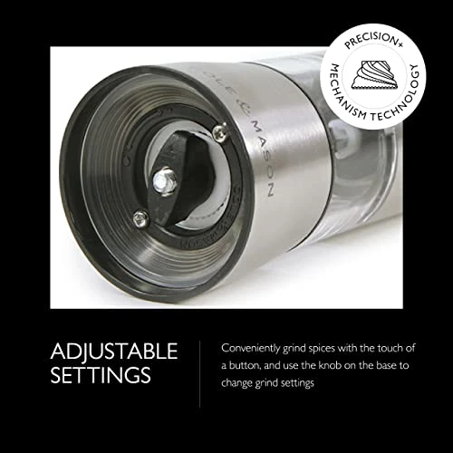 - Adjustable Salt Mill: Conveniently select fine or coarse granules by turning the knob in the base